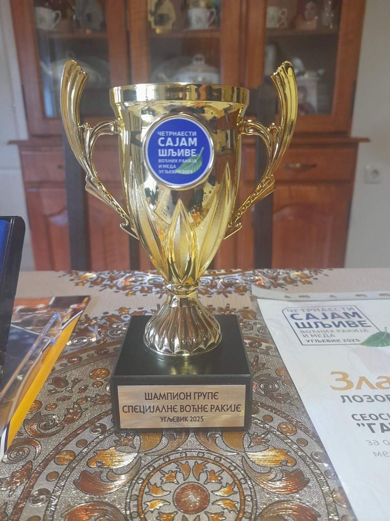 Porodična manufaktura iz Bogatića „Gačića Magaza“ postigla je izuzetan uspeh na 14. Sajmu šljive, voćnih rakija i meda održanom tokom vikenda u Ugljeviku, gde su se takmičili uzorci iz dvadesetak destilerija regiona. Tročlana stručna komisija na čelu sa prof. dr Ninoslavom Nikićevićem ocenila je njihove proizvode, a Gačići su osvojili sedam zlatnih medalja, od čega dve velike zlatne, kao i titulu šampiona u kategoriji specijalna voćna rakija.
